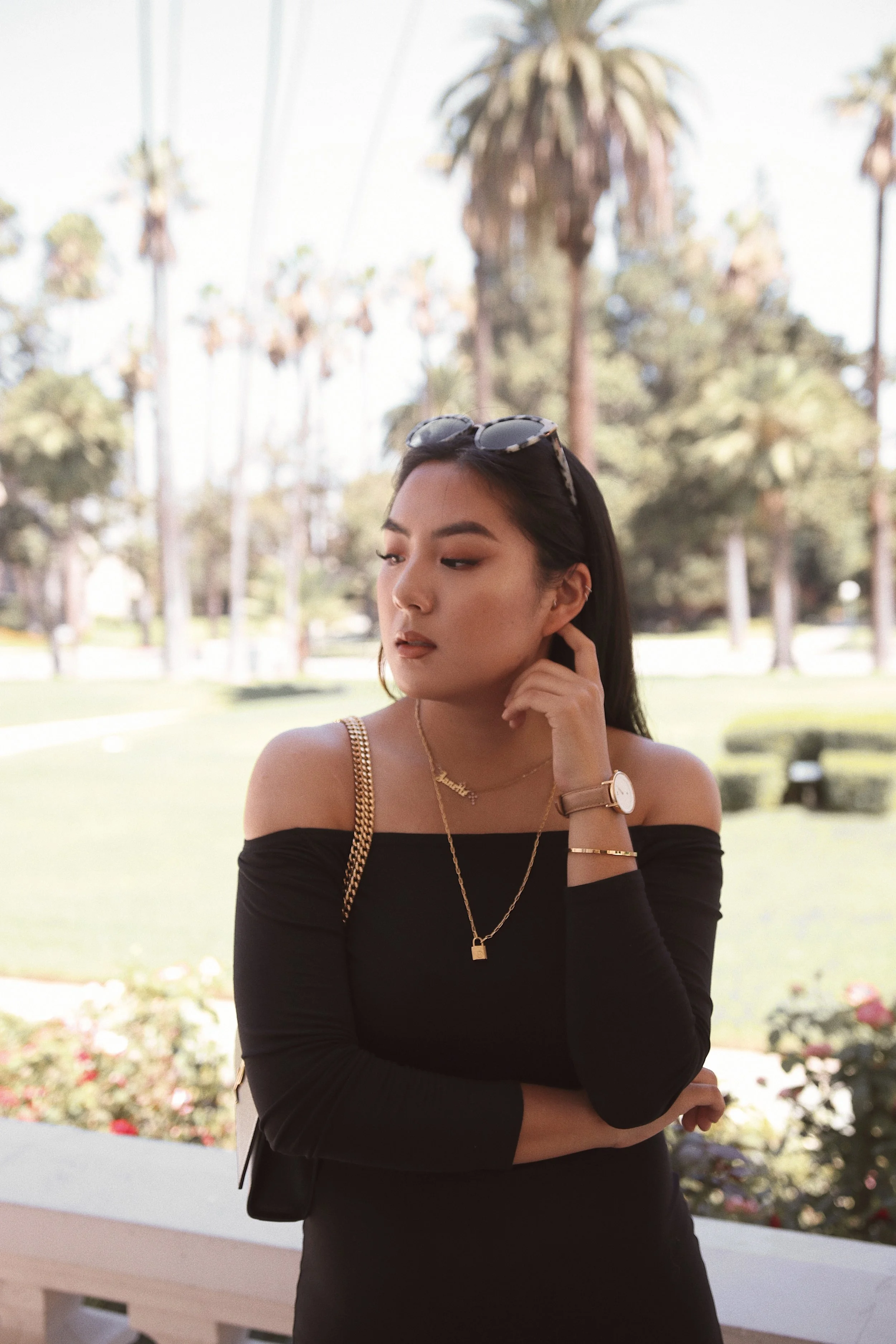 I love a good jersey off the shoulder dress. These are perfect to dress up or down because they are so basic! To style casually, dress with denim jacket and sneakers but to dress formal, wear your highest heels and a gold chain clutch!